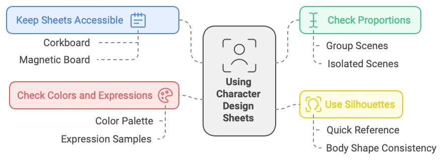 Keep Your Sheets Accessible: The design and comparison sheets should be visible or easily accessible as you draw. A corkboard or magnetically attached sheet is just the ticket. These sheets aren't just for reference; they're your anchor for drawing your character consistently.