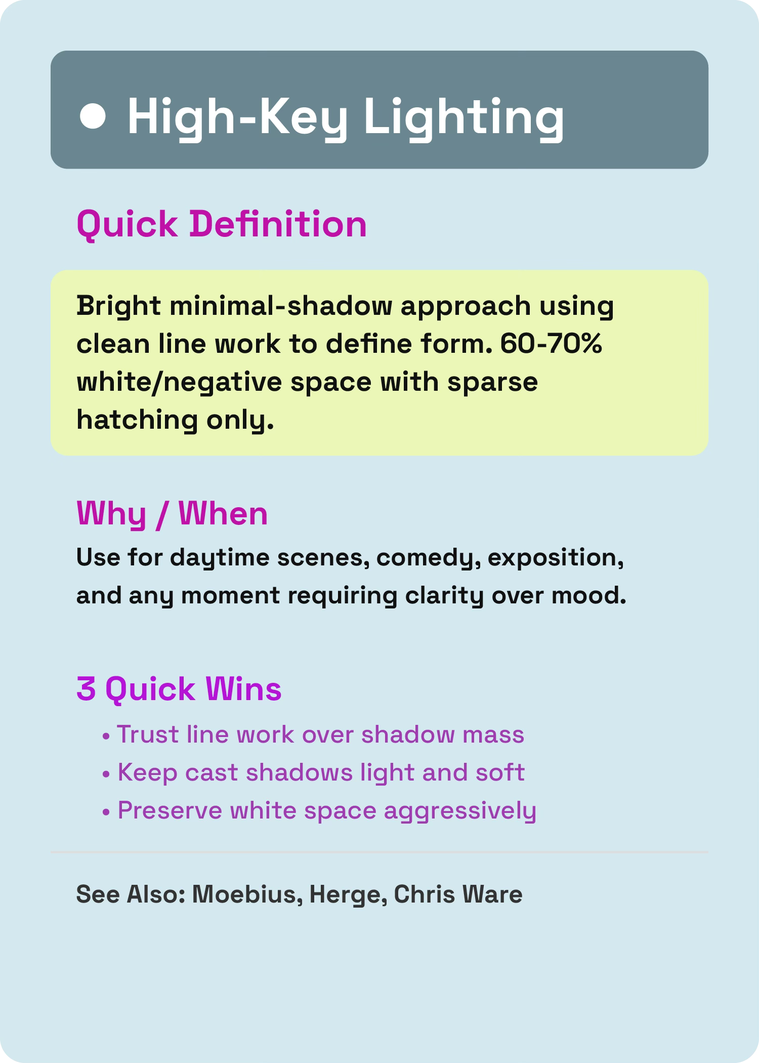 In comics, high-key lighting is clarity.