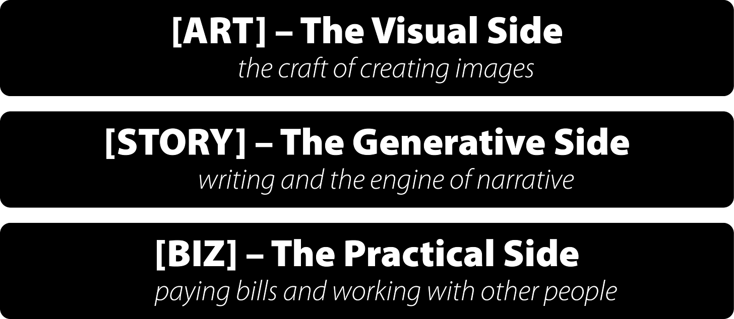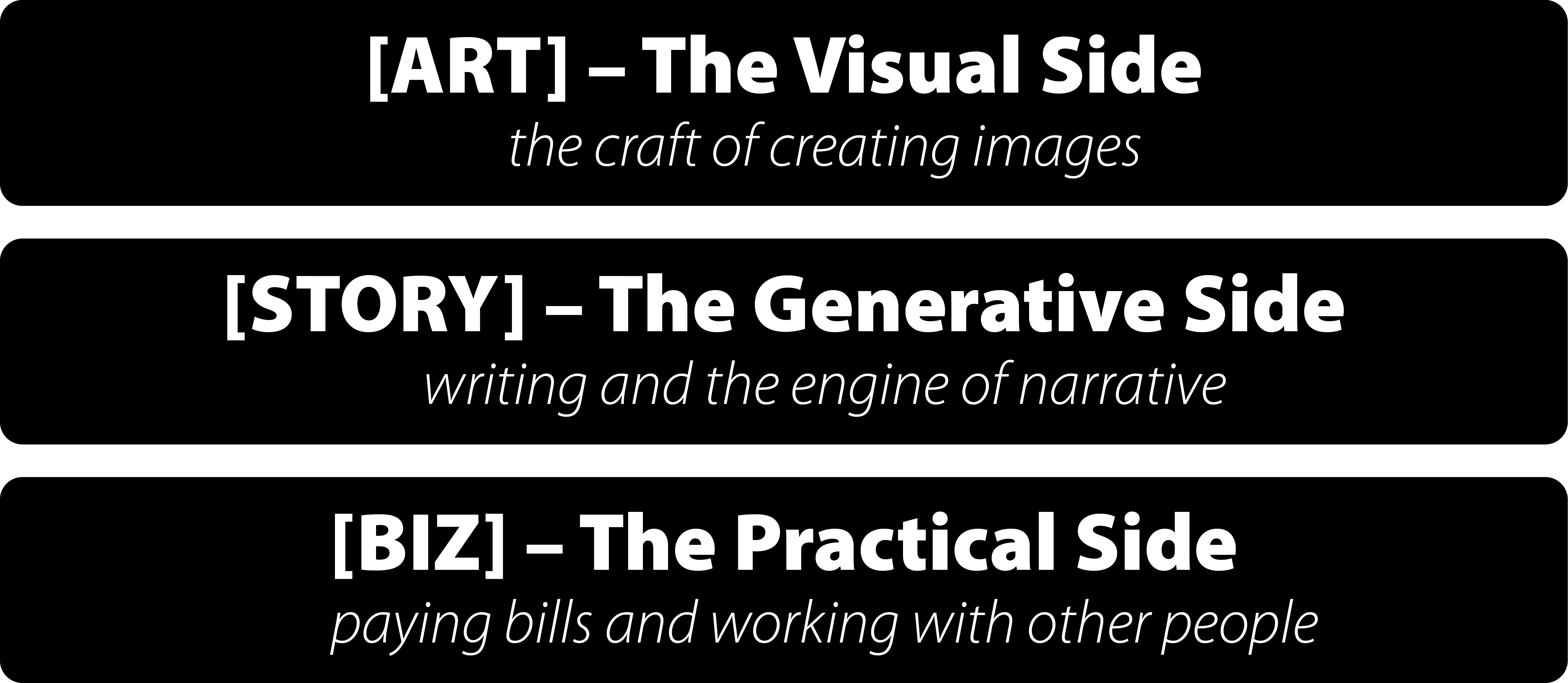 That’s the system: ART, STORY, BIZ—with diamonds to mark the level.