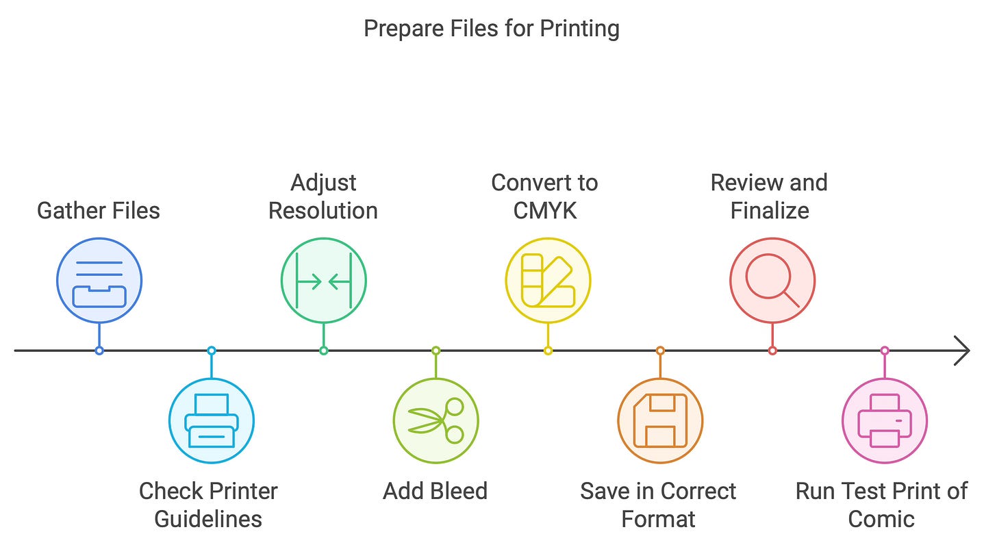 Why it's important: This is the final stretch. Keeping an open dialogue with the printer ensures that your vision translates well to the final printed comic.