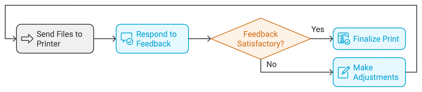 What it is: Send your files to the printing company, respond to feedback, and finalize the printing process.