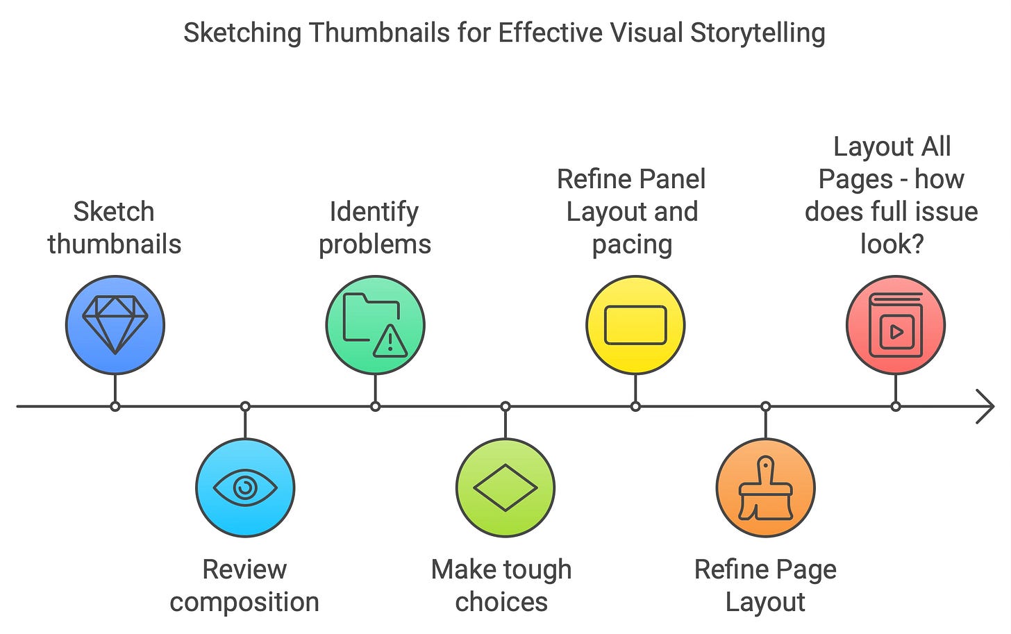 Not all the steps I have outlined below are REQUIRED. For example, if you're an expert inker, you might get away with jumping from Thumbnails to "Final Pencils." But I wouldn’t! Not at first. If you’re a pro. Sure, but why are you reading this?