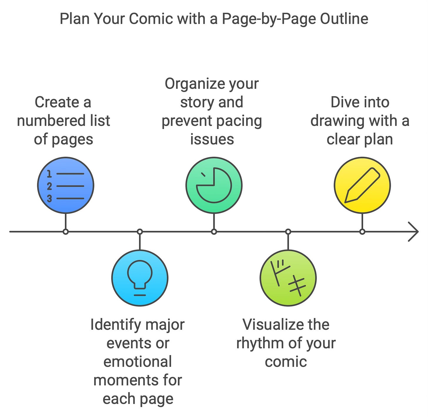 Why it's important: A page-by-page plan keeps your Story organized and prevents pacing issues. It helps you visualize your comic's rhythm before diving into drawing.