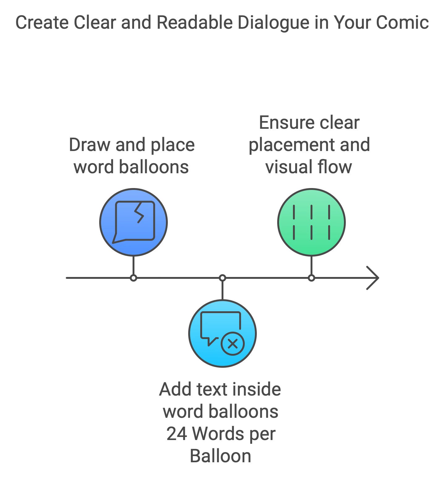 Why it's essential: Lettering is crucial to the flow of your comic. Poor placement or confusing balloon layouts can disrupt the reading experience, so getting this right helps with readability and pacing.