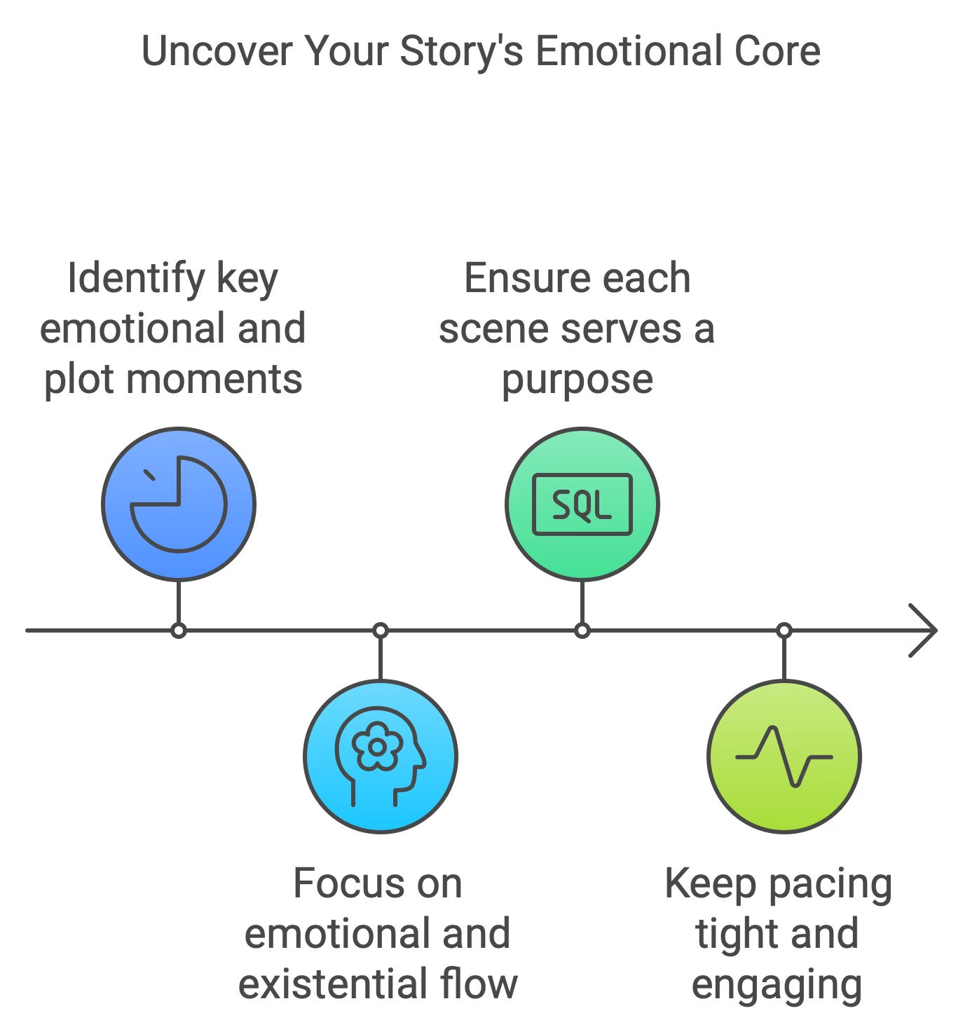 Why it's essential: This step helps you focus on the emotional and existential flow of your Story, ensuring each scene serves a purpose. It keeps the pacing tight and engaging for readers.